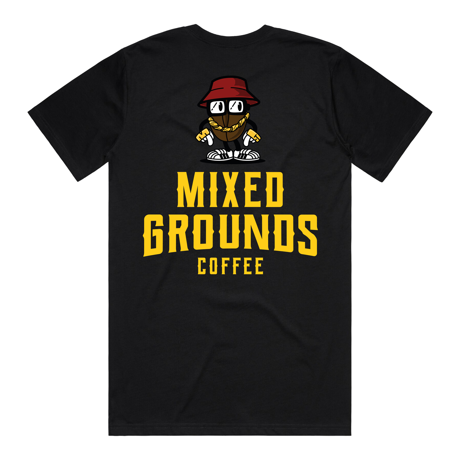 Mixed Grounds Coffee core logo tee. Screen print front and back.